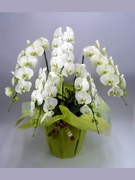 ぱっと見ためは白い胡蝶蘭ですが、浮かび上がるようなほのかなグリーンが幻想的で高級感を漂わせます。