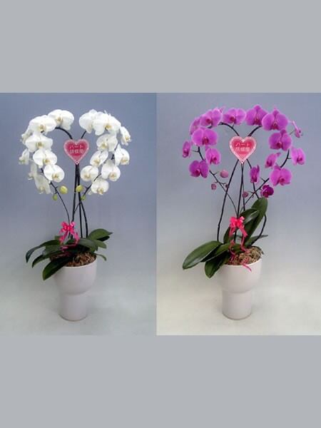 ★ハート仕立てにした可愛らしい胡蝶蘭です。