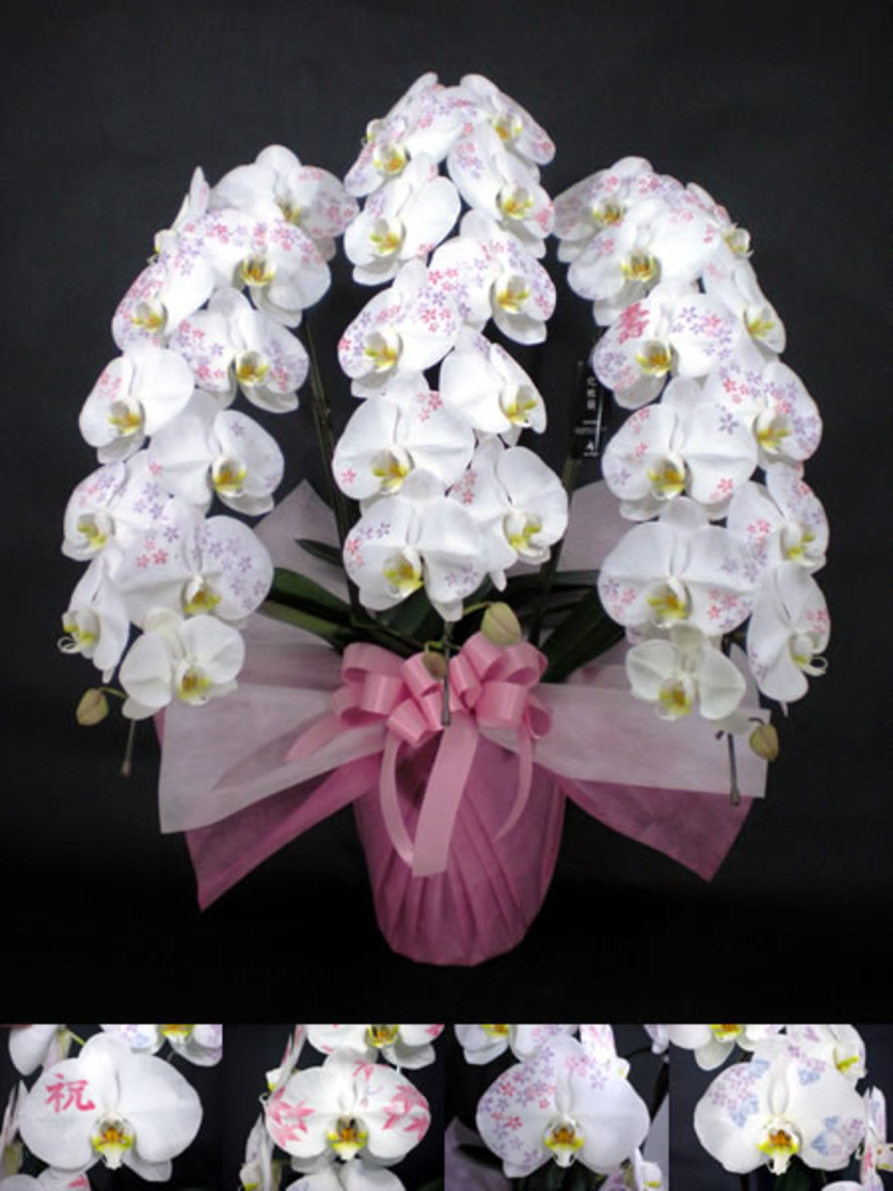最高級の胡蝶蘭に蘭専用のパウダーを用いて、1本1本手作業で華やかな柄や文字を施した、まさに“お化粧”をした胡蝶蘭です。華やかな化粧蘭は、大切な方へのプレゼントや開店のお祝いなどに最適です。あまり流通していない商品ですので、喜ばれること間違いなしです!!ワンランク上のサプライズとして贈られてみてはいかがでしょうか?アートグリーン株式会社製(商標登録 登録第5183409号 特許証 特許第4982901号)