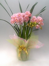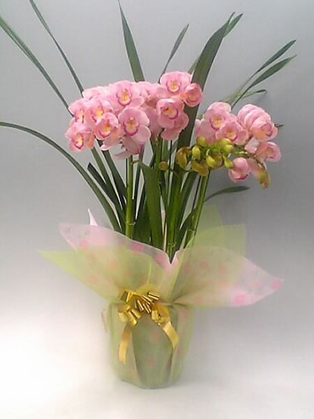 アーチ仕立てのシンビジュームで胡蝶蘭のように高級感があります。