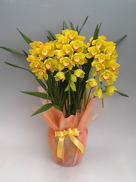アーチ仕立てのシンビジュームで胡蝶蘭のように高級感があります。
