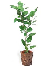 葉っぱの形や色つやが美しく当社にも3鉢飾っています。葉が茂り過ぎないので、上品で落ち着いた雰囲気があり圧迫感を与えません。モダンなインテリアとしてお薦めの観葉植物です。インドで神聖視される観葉植物です。インドでは結婚式の後、ベンガルボダイジュを庭に植えるそうです。しっかりとした葉脈の丸みを帯びた楕円形の葉っぱがかわいい。自由な樹形も楽しめます。